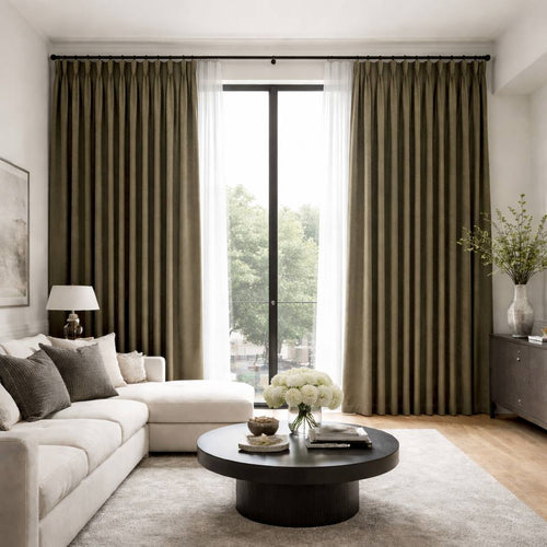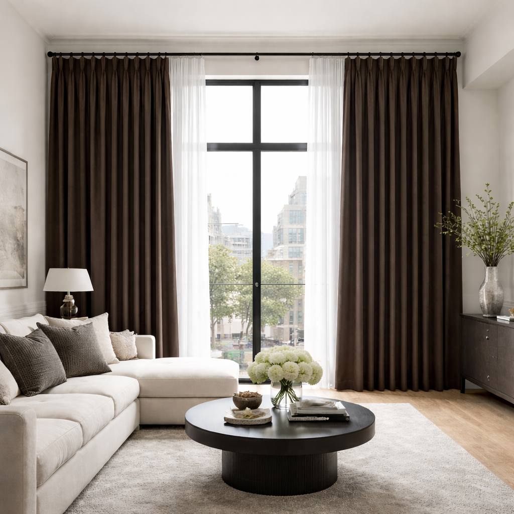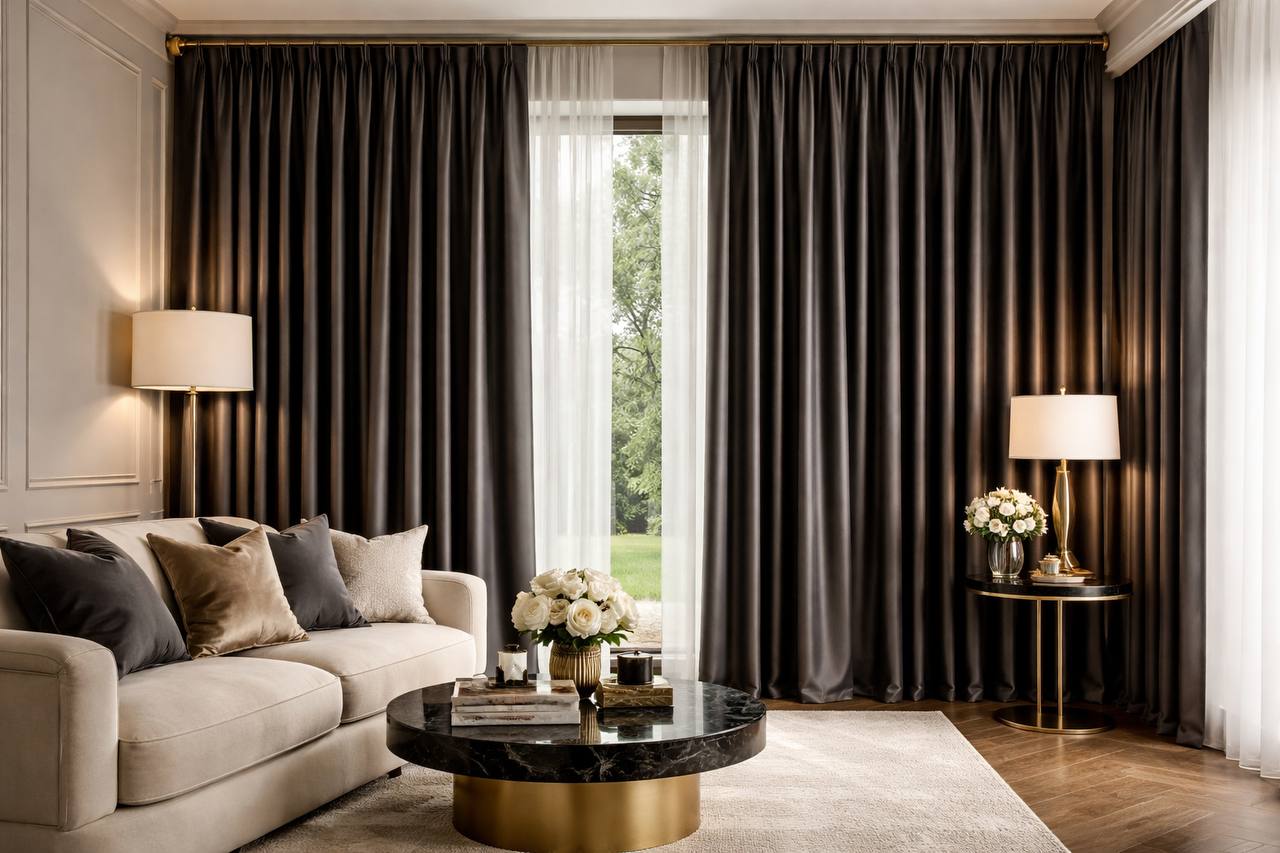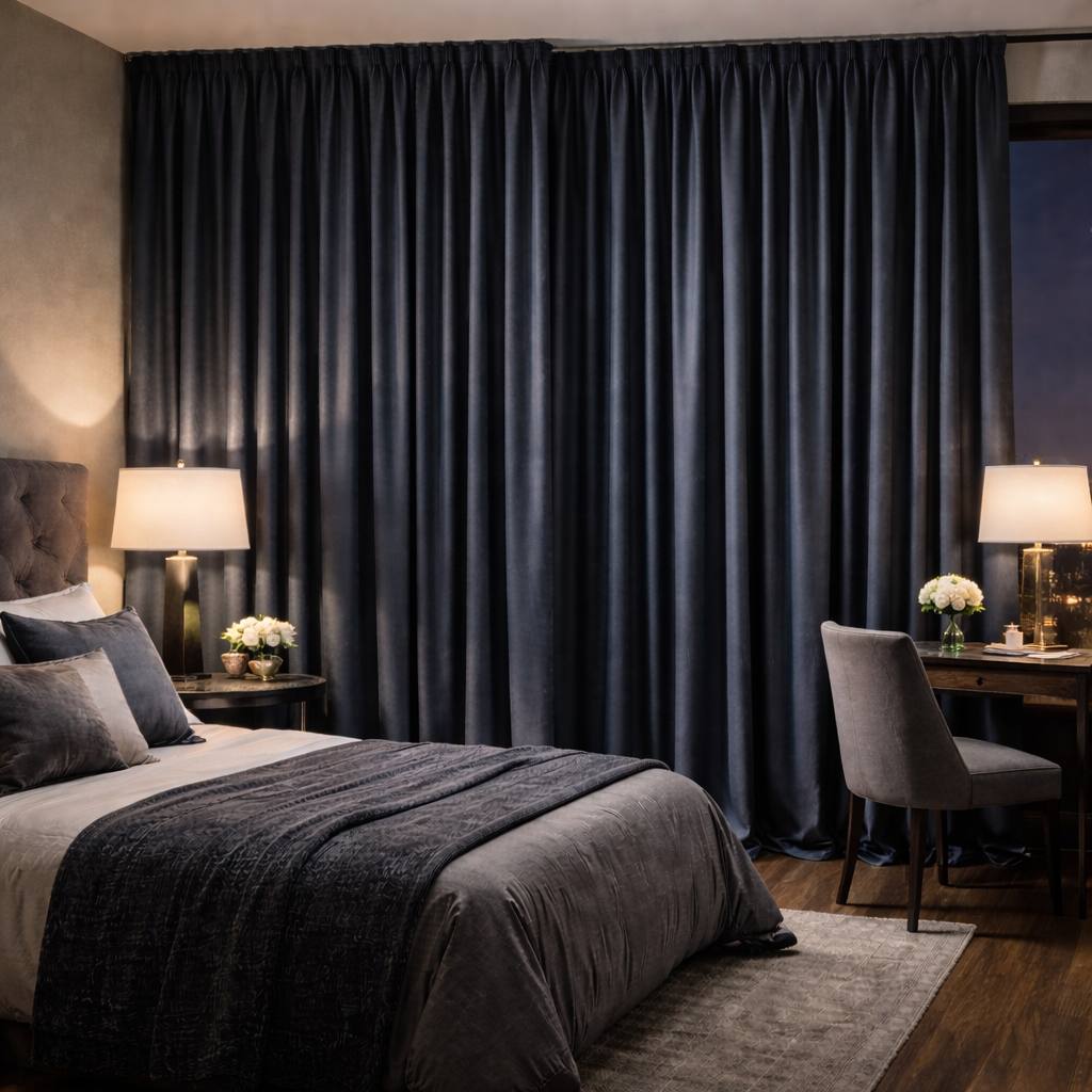 Timeless blackout curtains in a deep, calming tone. Ideal for bedrooms, offices, and luxury interiors.
